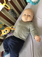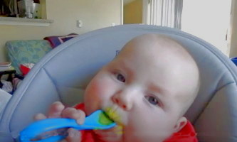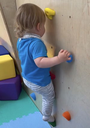 Oct 8 - Climbing WallArthur just mastered descending the stairs by going down on his backside. He's moved on to ascending skills on the climbing wall just behind his desk in their utility room. Eat your heart out kids. How many of you have your own personal climbing wall for a little exercise break from doing artwork or reading at your desk? | |||||||||