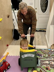 December 2021![]() Arthur likes to help his parents work in the garden at their new house and to push/pull anything with wheels, so for Christmas, I made him a garden cart. It was raining so we didn't have time to work in the garden but tested it out in their new utility room which is also Arthurs' play and workroom.