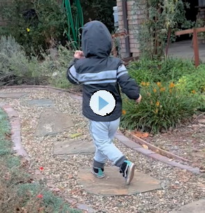 October - Arthur takes a jog around Grandpa's rehabbed (grass converted to drought tolerant plants) front yard garden path.![]() | |||||||||