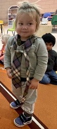 Show and tell day at pre-school for things beginning with the leter "T". Arthur wore a McBride family tartan tie. ![]() | |||||||||