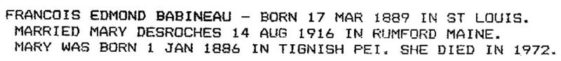 Arthur Joseph Babineau McBride's Great Grandparents and Ancestors.
