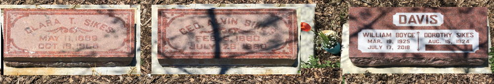 Jonathan Sikes (1830-1913) Caroline Woodley Sikes (1849-1915) Jack Sikes (1916-1953) Alvin Sikes (1880-1960) Clara Thomas Sikes (1889-1966) Thomas (Sandy) McBride (1915-1996) Joanna Mei-Yu Chien (1947-1996) Patricia Gilmore Sikes (1918-1998) Jean Sikes McBride (1915-2002) Benjamin Davis (1976-2014) Stephen Sikes (1948-2016) William (Bill) Davis Sr. (1925-2018)Pictures of those with us in spirit only.