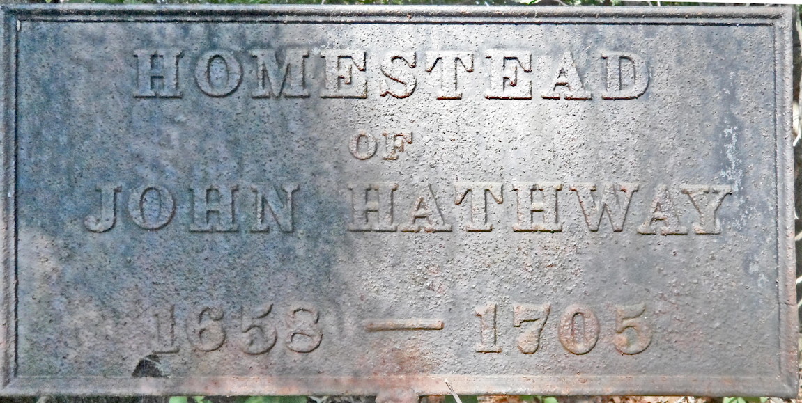 Plaque on east side of the road at between 768 and 772 Berkeley St. just South of Swing St in the SW part of SW Berkeley, MA known as "The Farms". It reads "Homestead of John Hathaway 1658-1705" Erected there in 1889, by the Old Colony Historical Socitey The property there is owned by Joseph Hathaway of Dighton and his daughter Anne's house is just south of the plaque. Mary Hathaway recalls that her husband, John, found a Mr. Babbitt, who lived near the plaque, whose family was related to Hathaways by marriage and partnerships. Return to the Hathaway Fairchild Page. |