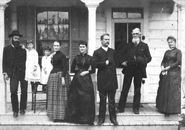 Picture of King/Hellar family taken in San Lorenzo 1888.Left to right are Lewis Leroy King, Elva King, Lelia King, Annie Hellar King, Lida Hellar, Tom Douglas Hellar, Thomas Hellar and Mary Hellar Return to the Hellar Page. | |