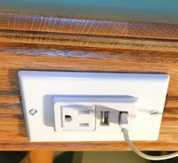 I installed a modern outlet with usb charging ports connected to an extension cord which I can plug into a wall outlet.