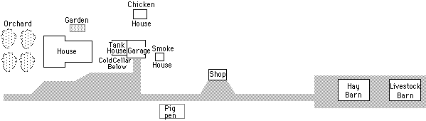 ![]() Plowing time on the Sikes Ranch .. Alvin with the lead team. The ranch consisted of the house, two barns, a bunkhouse for hired hands, a smokehouse, a shop, a tank house with a garage below, another small garage, a chicken house and a cold cellar. The tank house had a large elevated water tank which was filled by a pump attached to a wind mill and used gravity feed for a continuous supply of water.